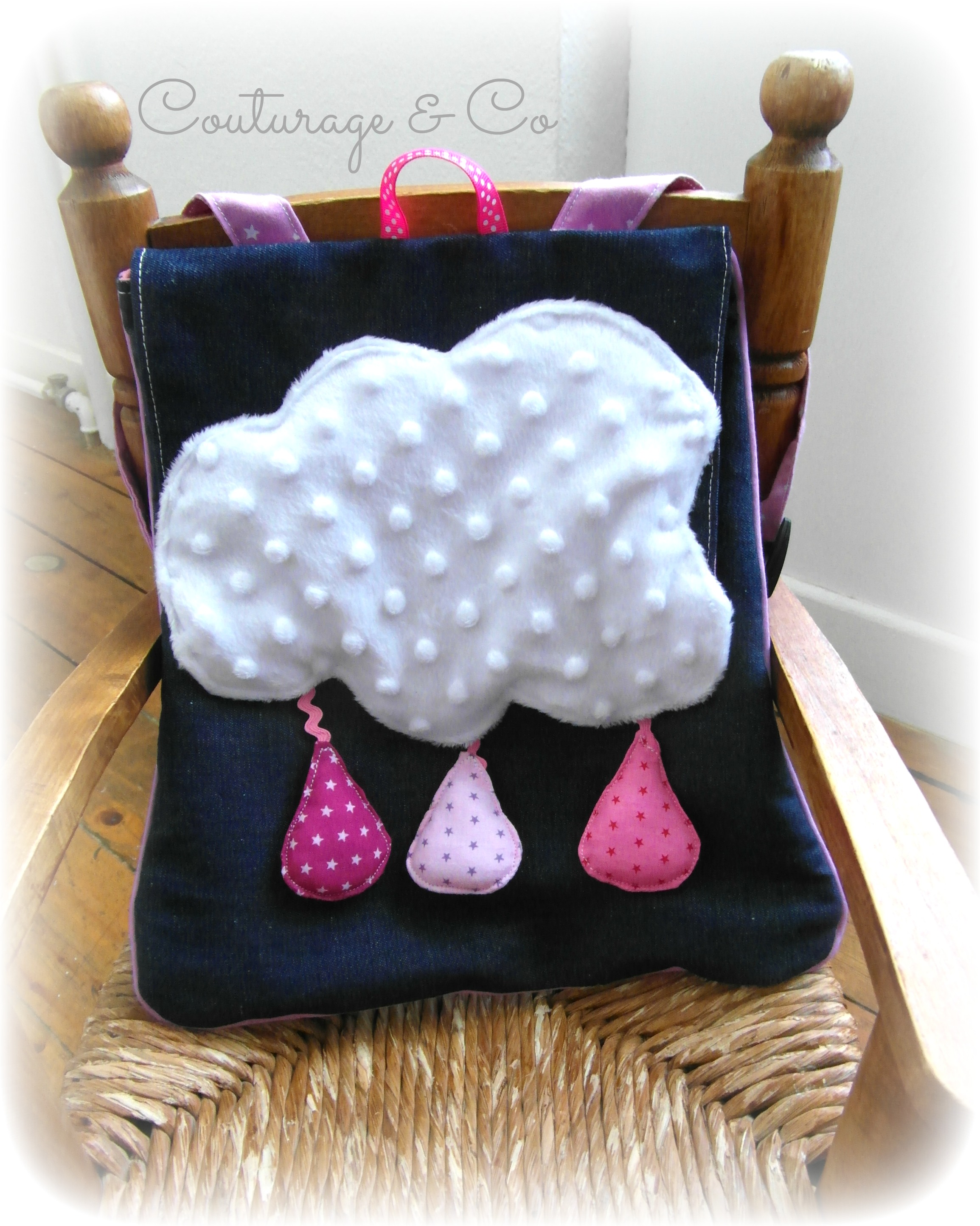 Pour sa rentrée en Maternelle Petite Section (après avoir déjà fait une année de très petite section) elle a choisi ce qu’elle voulait et j’ai exécuté 😉 Sac Circé 2Sac Circé 4Modèle Circé (j’avais sélectionné Anastasia… mais elle préférait le nuage) issu du livre Cartables et Sac a Dos de Fée Edwige alias Mavada.