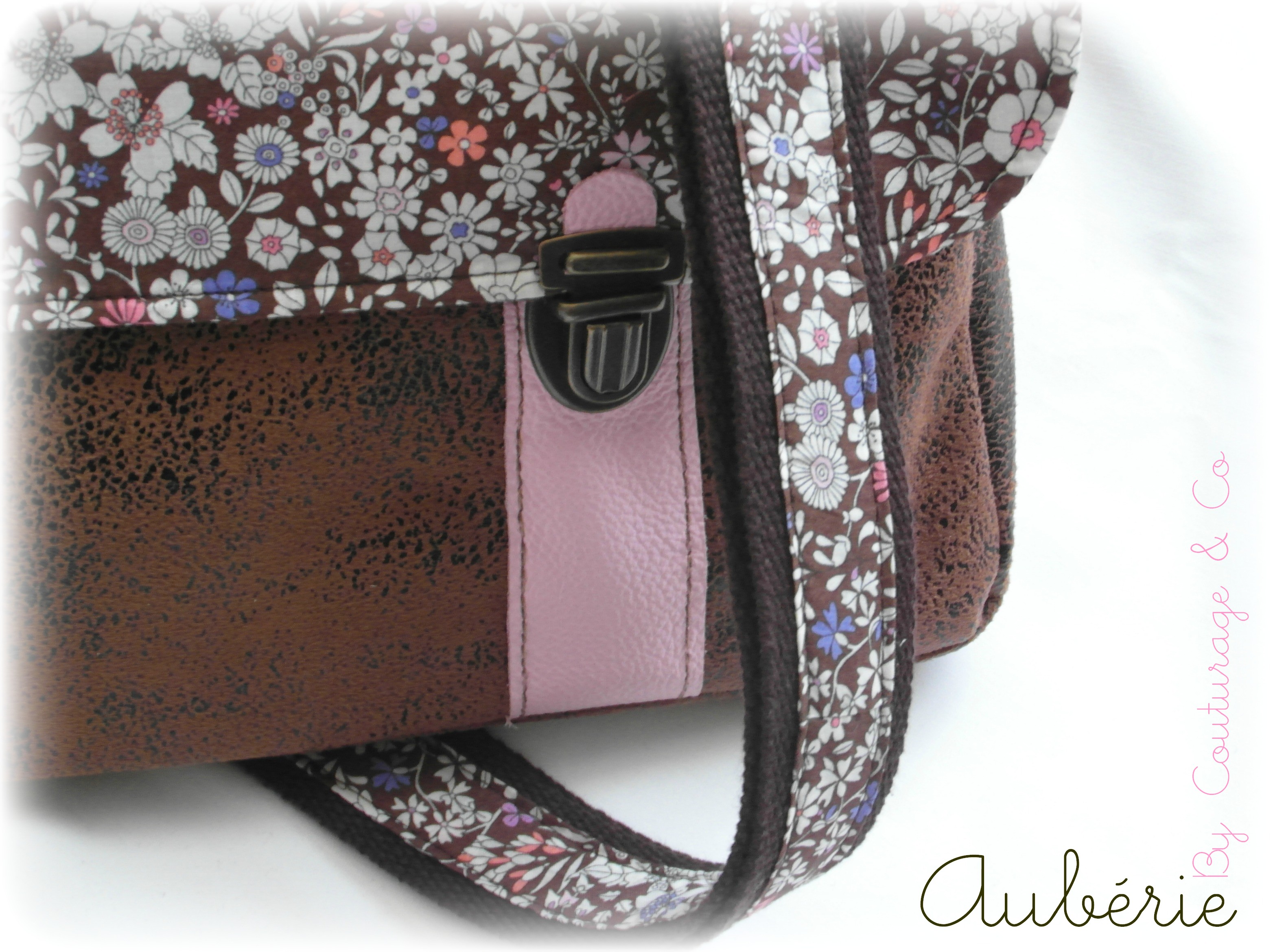Petites modifications pour la fermeture par des boucles de cartable plutôt que des clous, et également une sangle en coton agrémentée d’un biais maison en liberty.