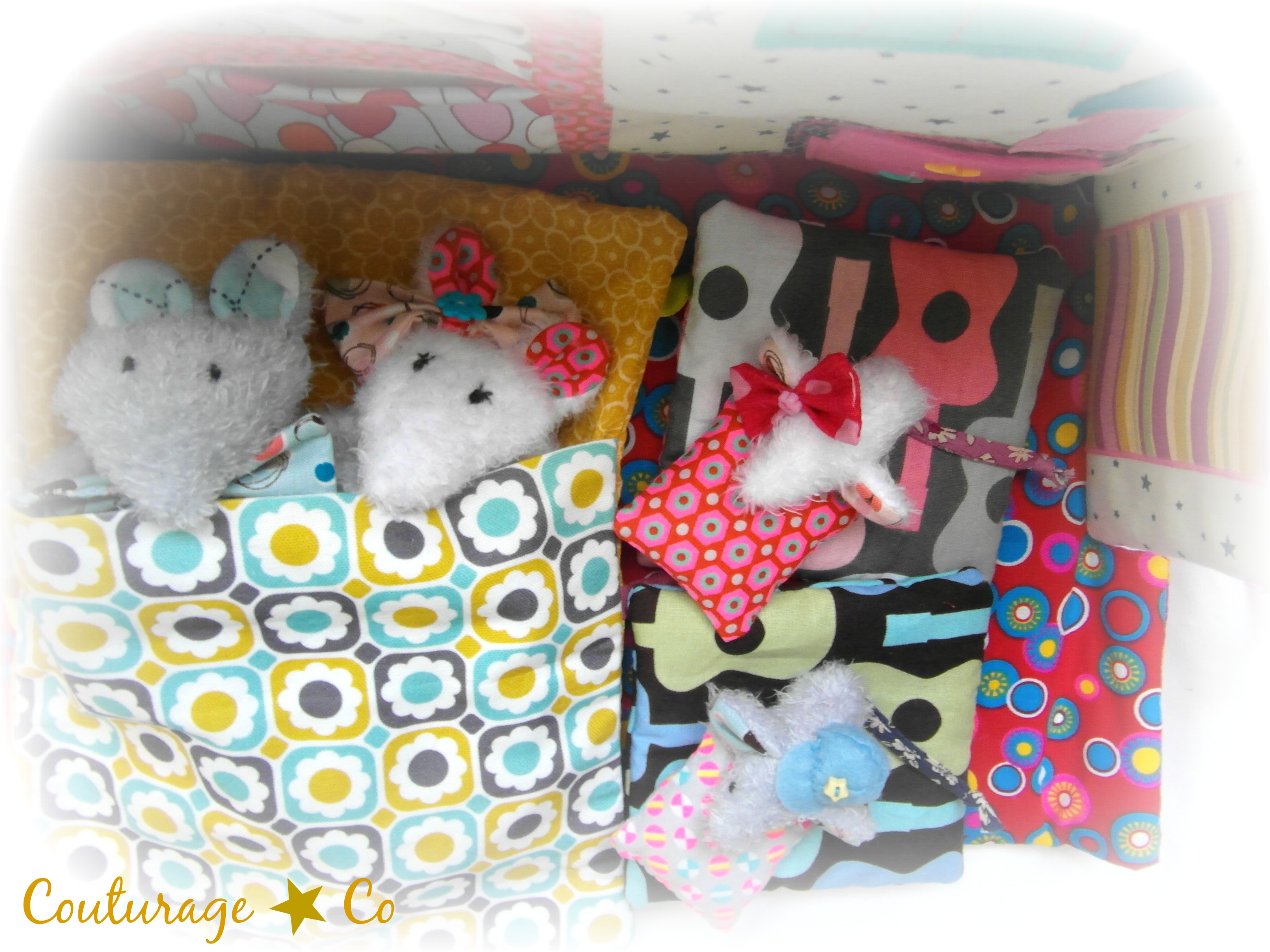 2. Tu as vraiment des doigts de fée. C’est sublime. Tout est magnifique le choix des tissus, les petits plus qui change tout et les trop mignons habits des minis souris. Tu nous raconteras l’ouverture des cadeaux hein?