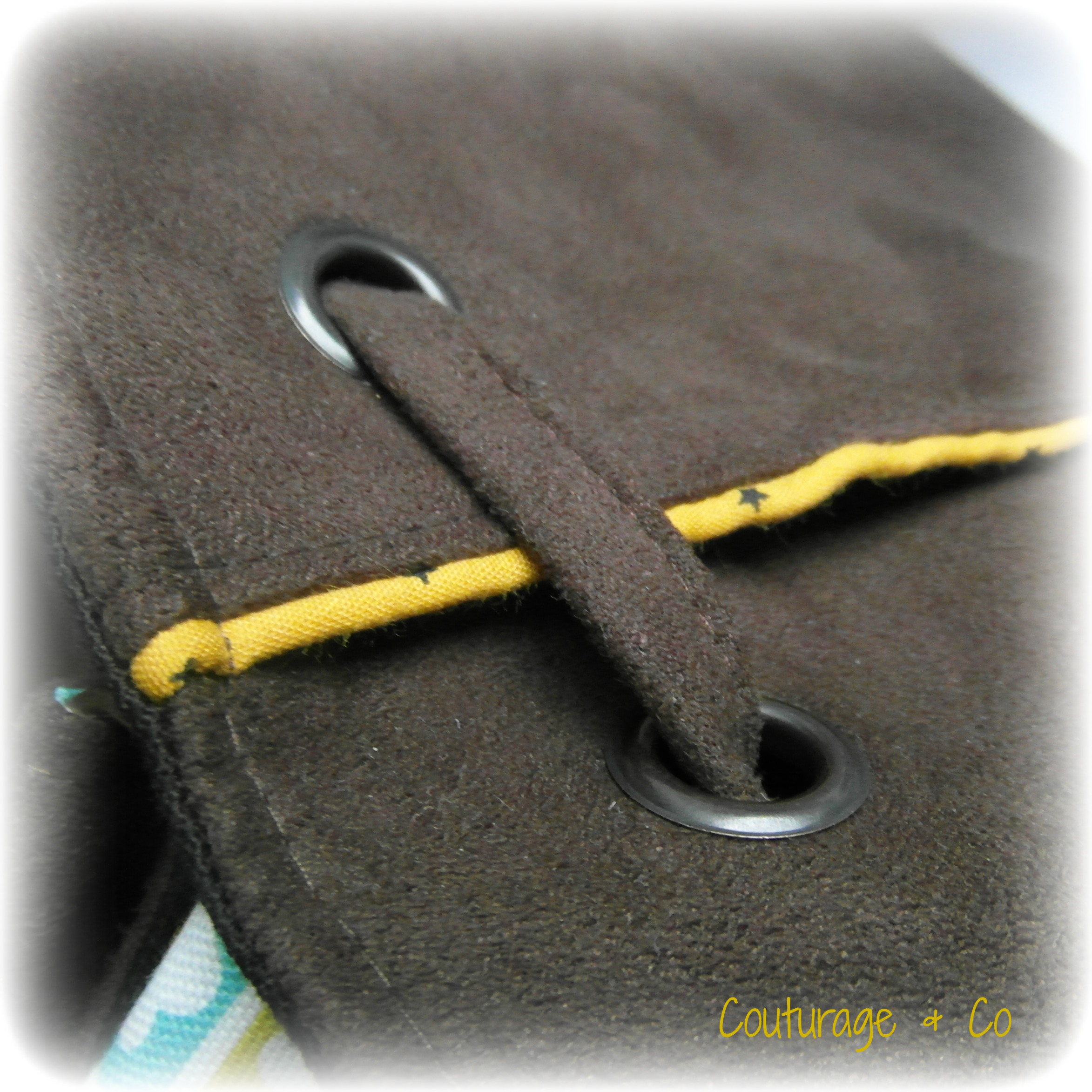 Bouton Vis de Col de La Farandole des Tissus, et oeillets Ma Petite Mercerie.