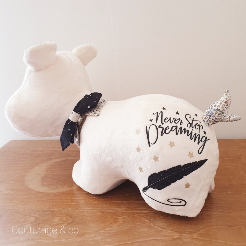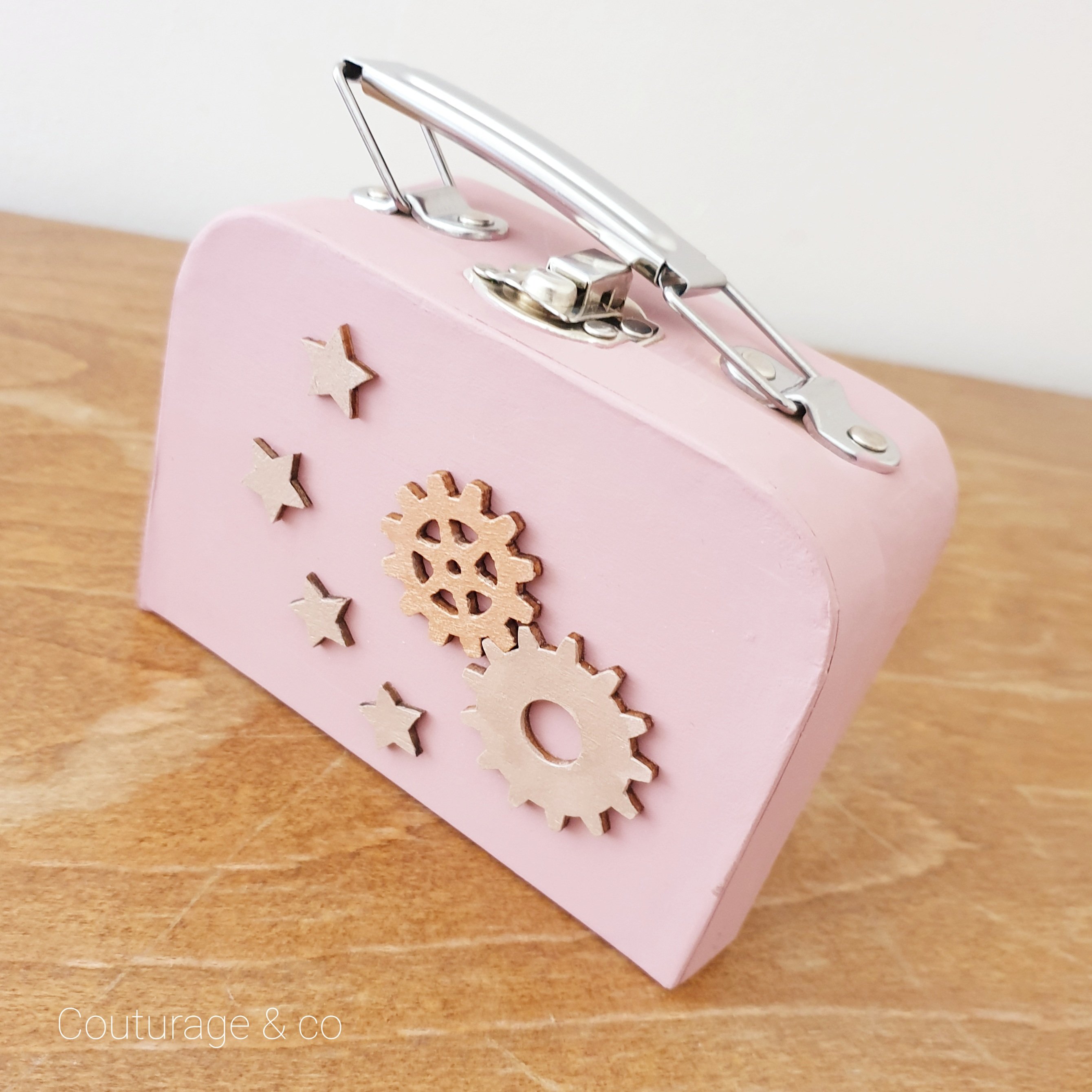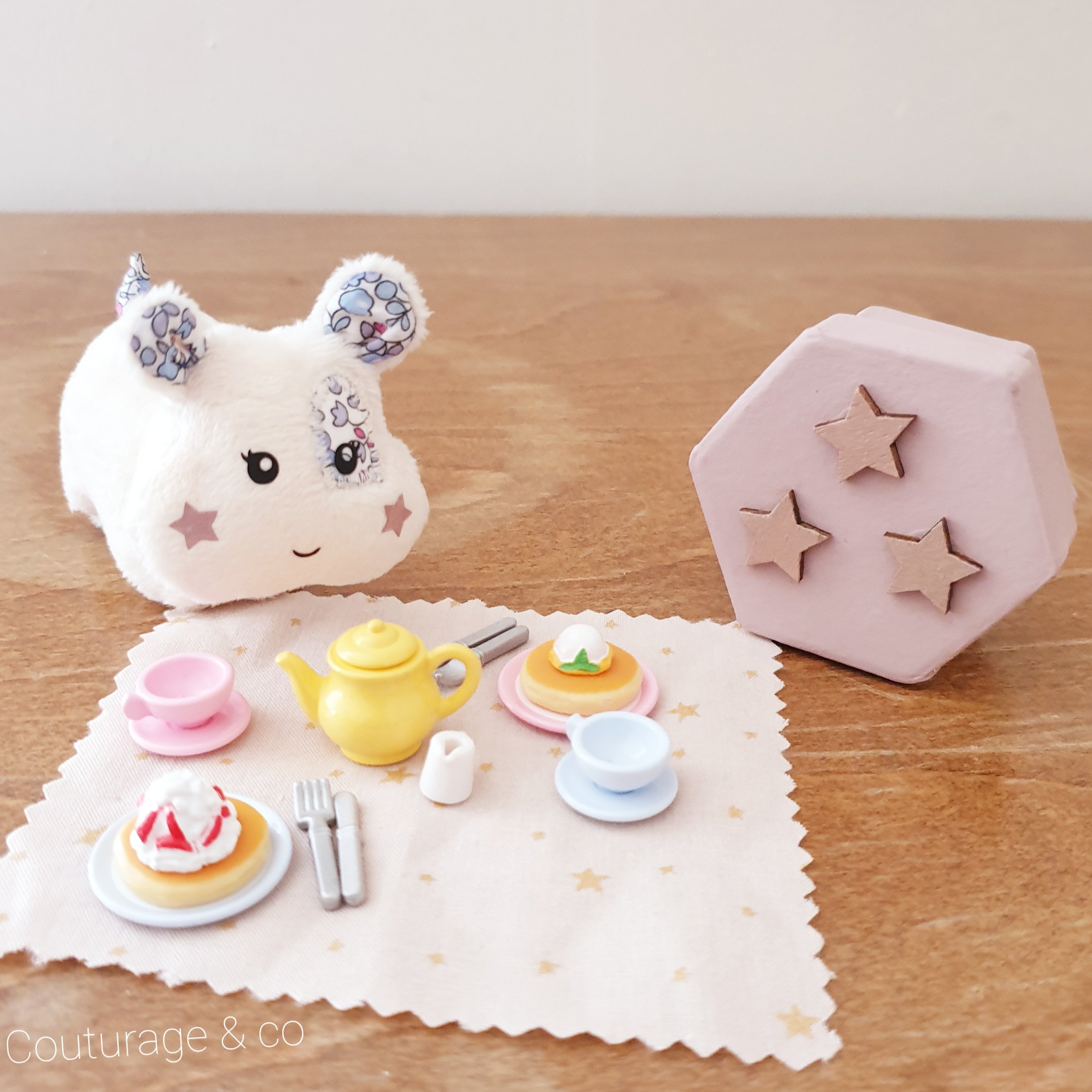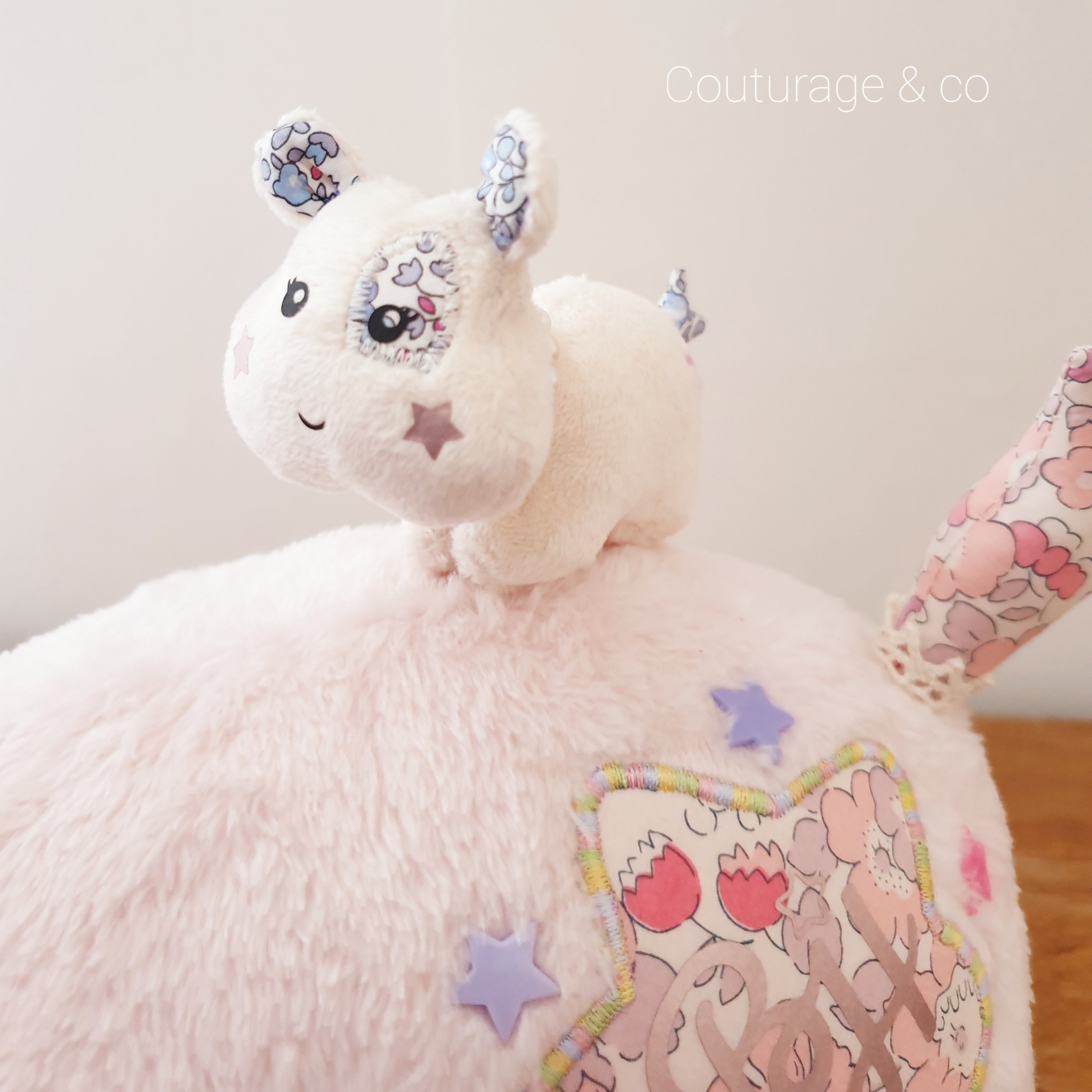 Comme habituellement tout est né sous mes petits doigts, douillette de chez Mondial Tissus, le minky de chez Kullalo, Liberty et popeline étoiles déniché chez Motif Personnel, la jolie feutrine pailletée provient de Cultura, les pressions étoiles arriveront dans ma petite boutique très prochainement ! Les boîtes proviennent de Cultura, customisées par mes soins à l’aide de différentes techniques, peinture et collage ! Les motifs en flex réalisé avec ma petite Cricut Joy, le petit bonbon qui sublime mes créations !