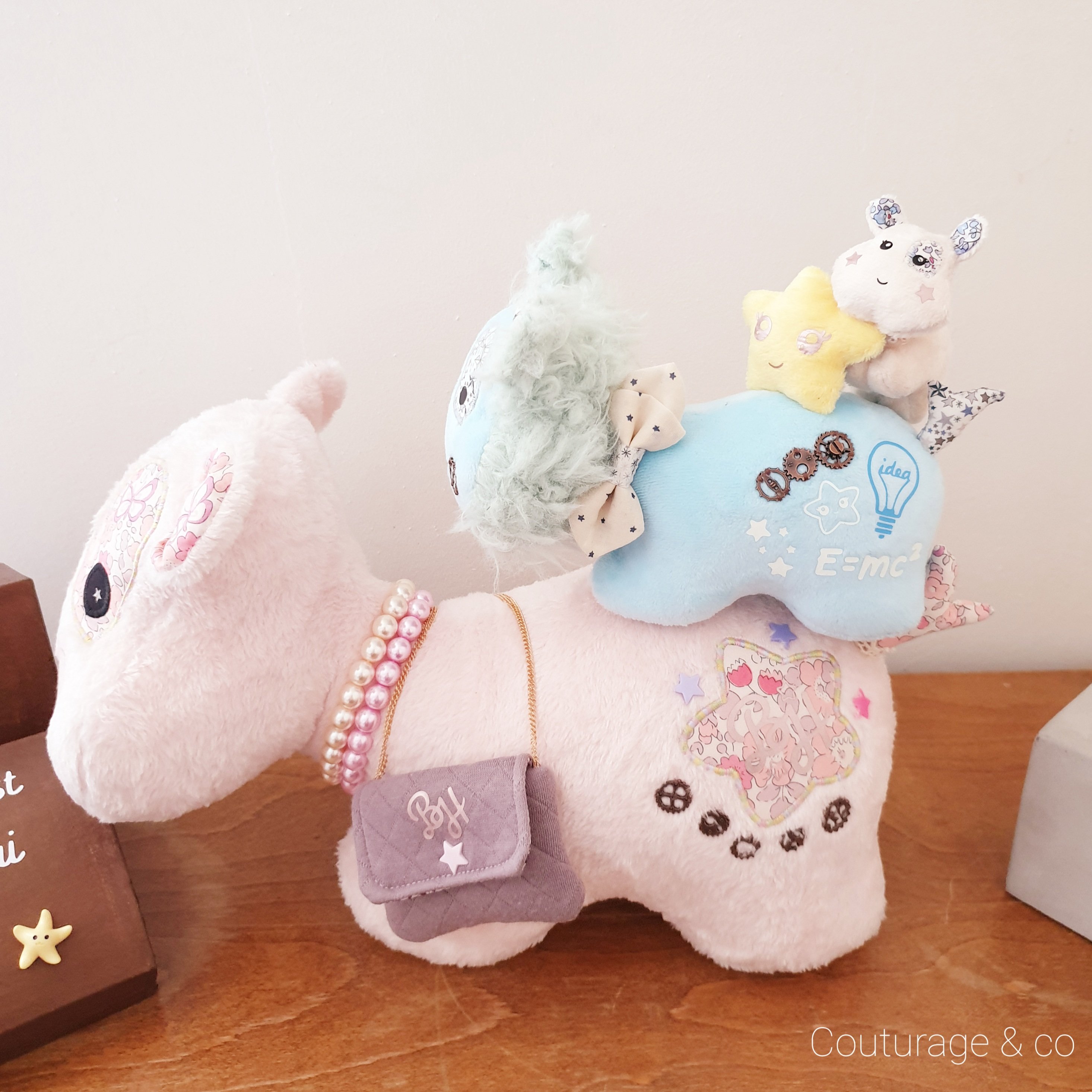 Créer un doudou c’est une aventure magique, il est unique comme chaque pièce de ce colis, un doudou c’est une petite âme à laquelle j’imagine une histoire qui parfois m’emporte assez loin ! Les histoires naissent au fur et à mesure que tout nait sous mes doigts, toutes les techniques sont permises mais j’aime privilégier l’art du fil ! Ces doudous et leurs histoires sont mes voyages à moi, enrichissants, imaginaires et qui laisse libre court à ma créativité, enchanteurs pour moi mais aussi je le sais désormais pour ceux qui les reçoivent et ceux qui les vivent à travers les billets de blog !