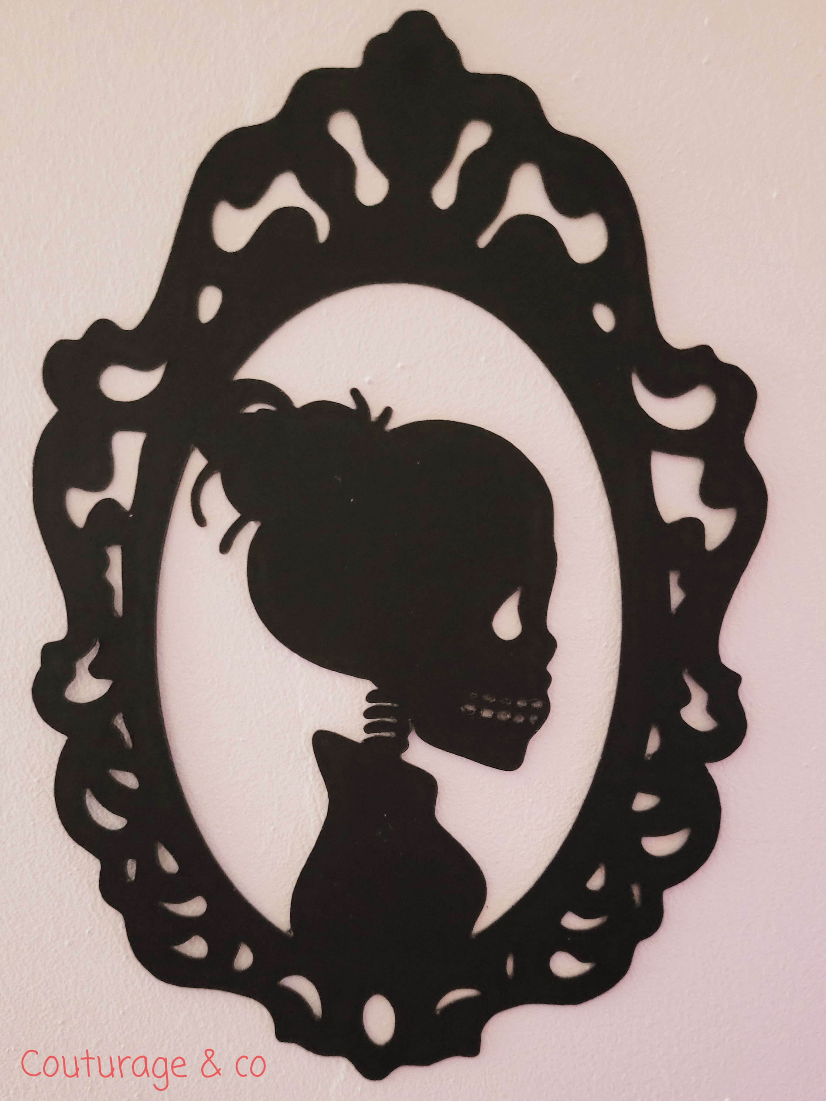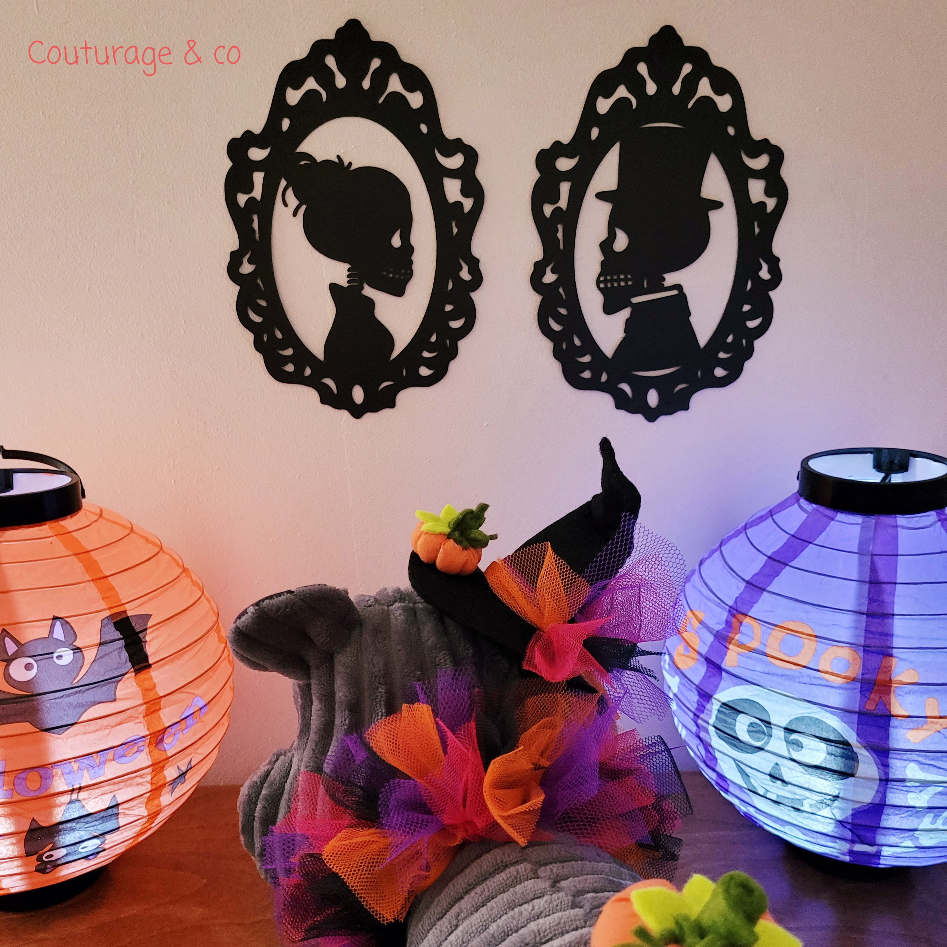 • Portrait Mme et Mr Squellette : modèle trouvé sur un groupe Facebook Cricut, papier 270gr de chez action, réalisé avec la Cricut Maker