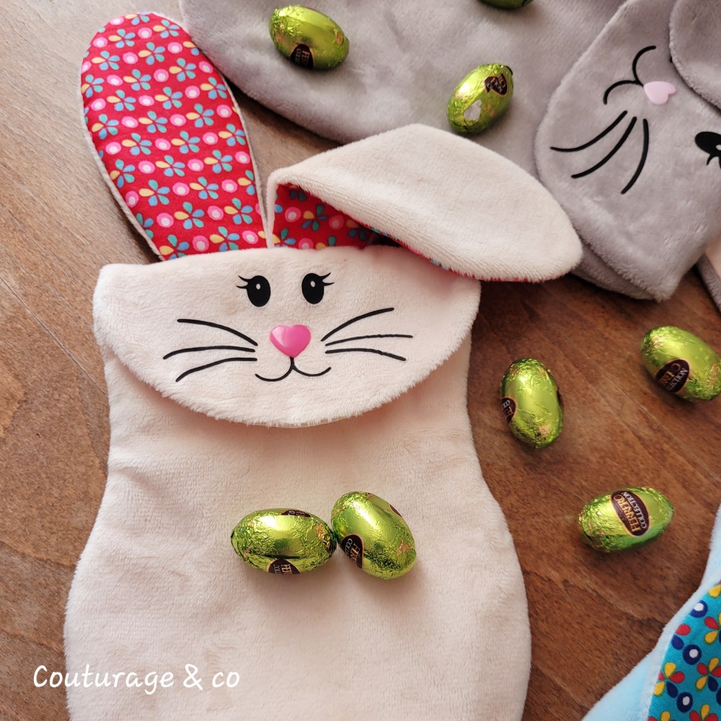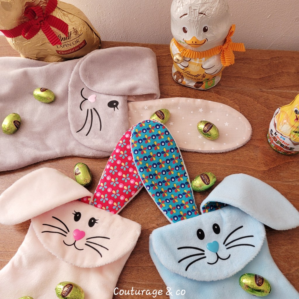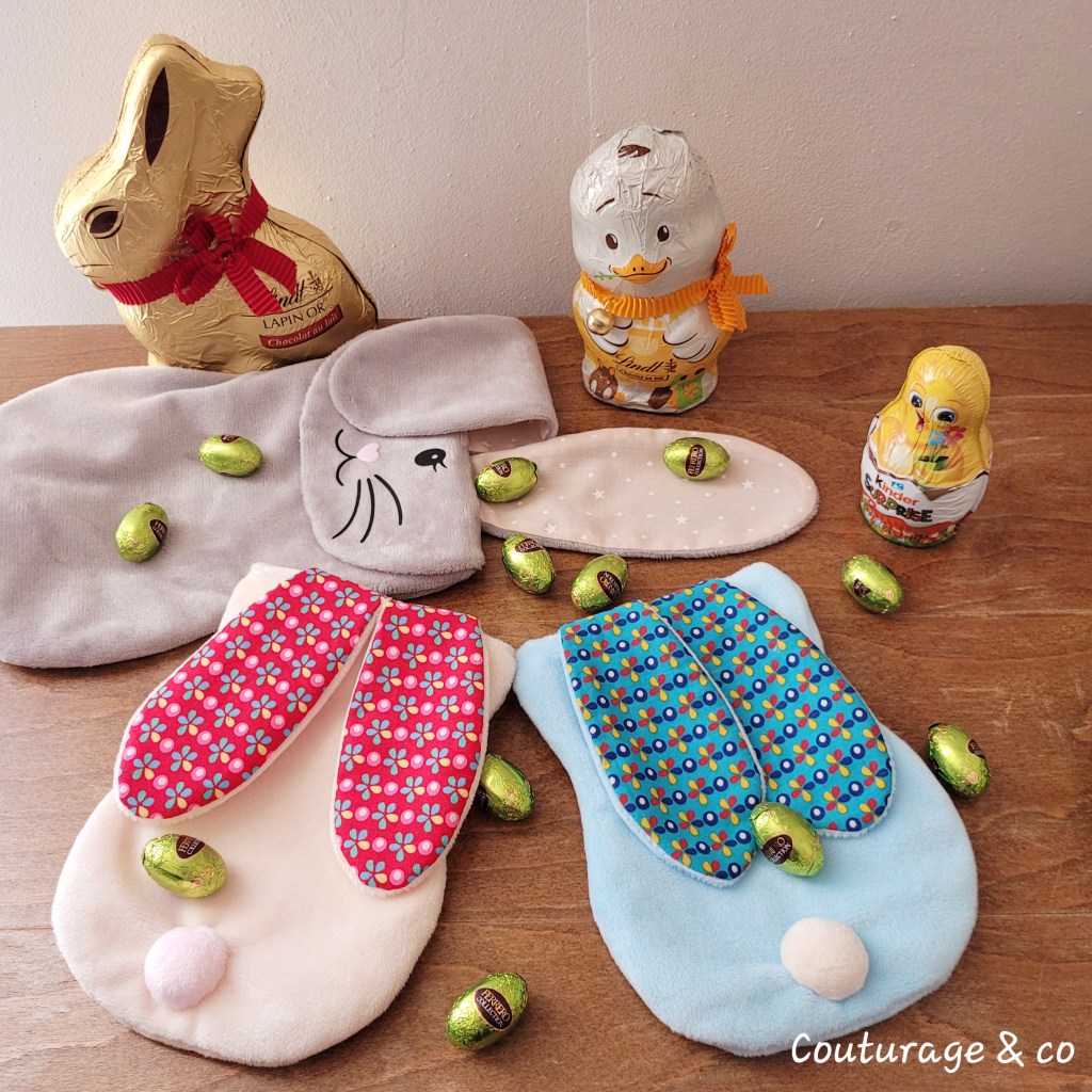 Le Pochon Lapin ! Tout simple, tout doux, pour y cacher des gourmandises au chocolat, et réutilisable !