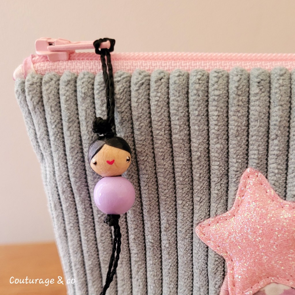 Le petit truc en plus qui l’accompagne depuis quelques mois, et qui est assorti à sa trousse de toilette dont je vous ais parlé dans un précédent billet.