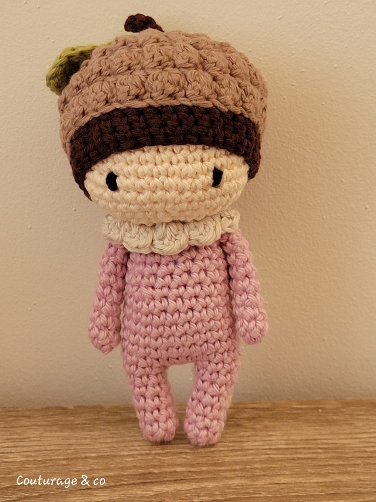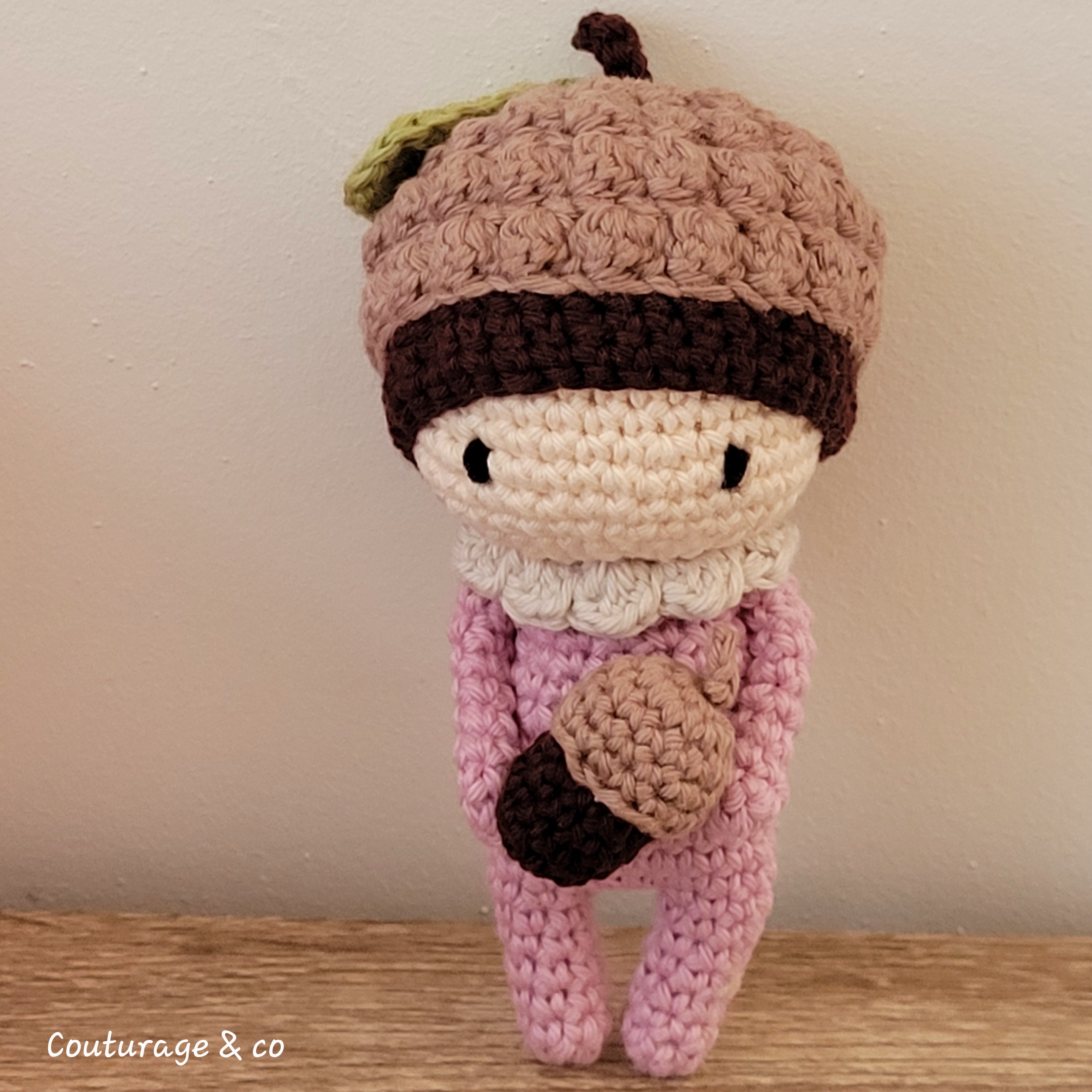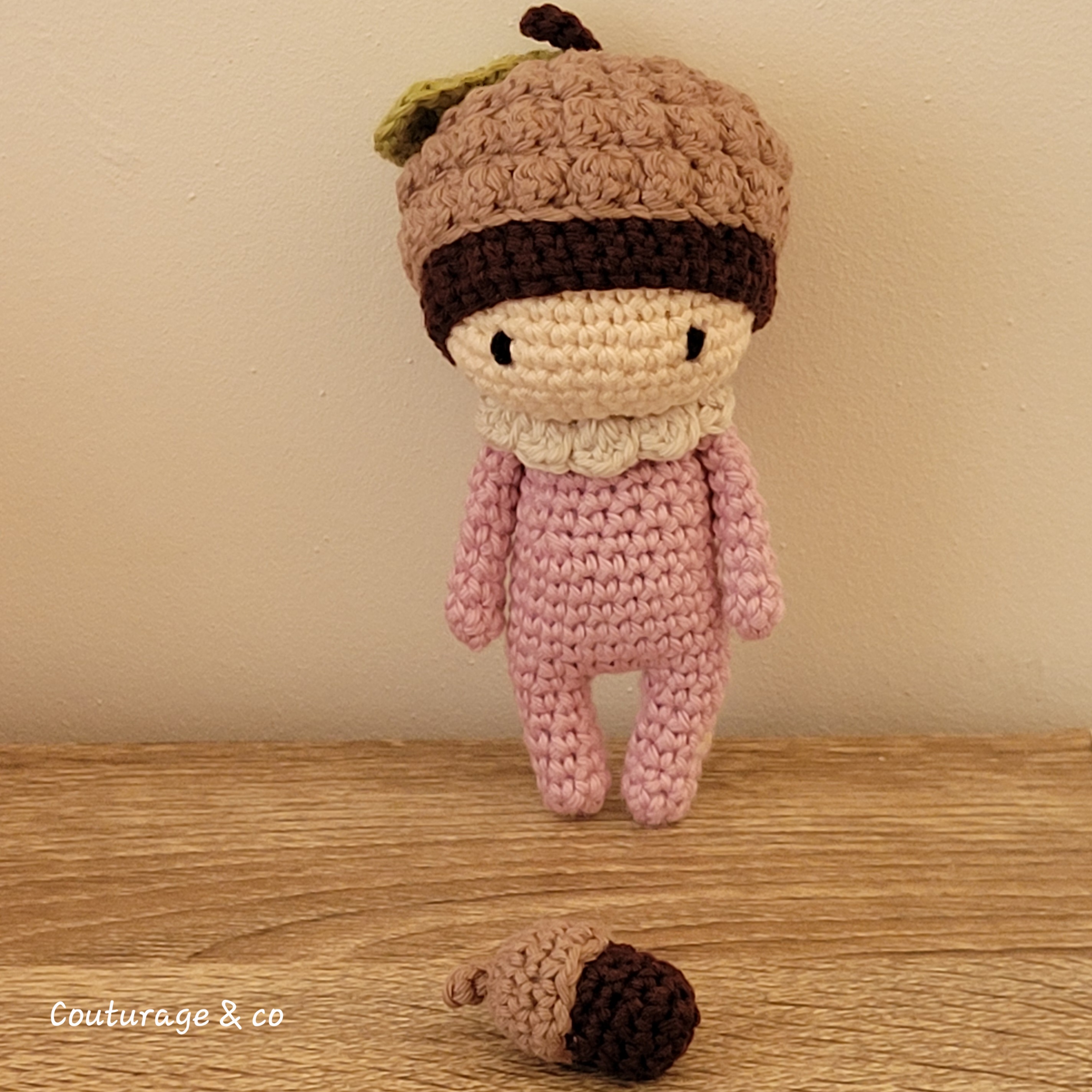 Les petits détails qui font son charme, son petit chapeau en point pop corn, avec une petite feuille de chêne.