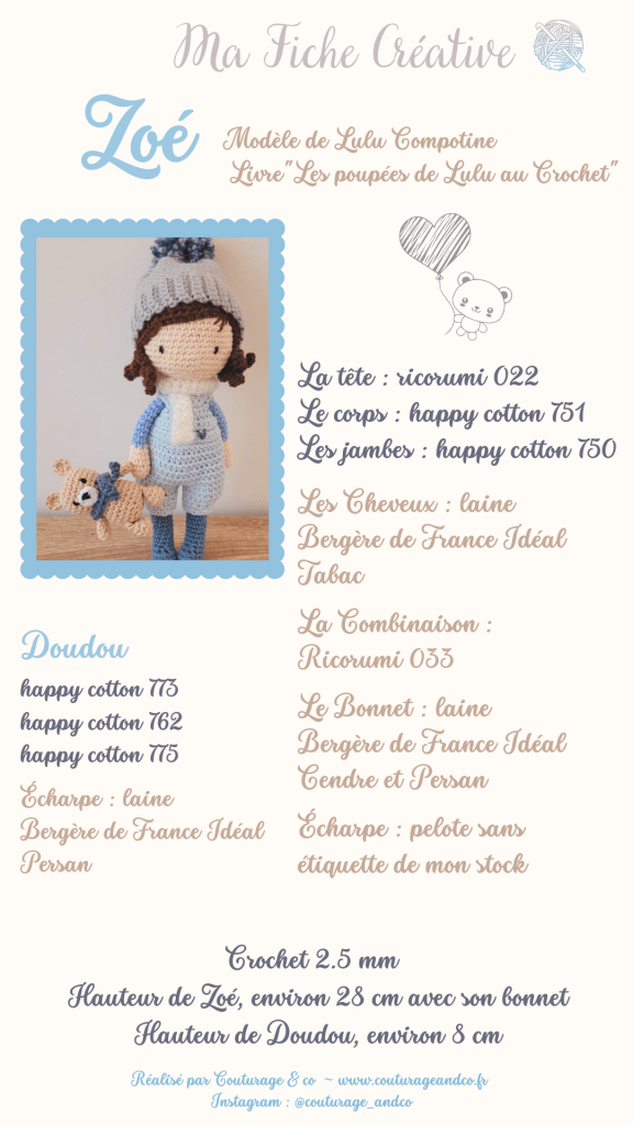 Pour clôturer ce billet de blog, je vous offre ma petite fiche créative, le mémo de Zoé. Je pense que d’autres Zoé verront le jour dans les mois à venir, tout comme d’autres poupettes 🙂 J’ai également mis à jour la fiche créative de Lisette, elle est disponible dans l’article qui lui est consacré.