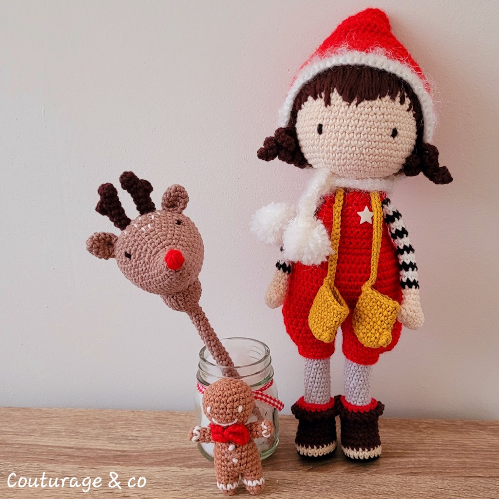 Les petits amis d’Alix sont vraiment la petite note qui donne tout son charme à cette lutine, ce petit Renne est juste adorable, et le petit Bonhomme Pain d’Epices juste attendrissant, ce sont mes symboles préférés de Noël !
