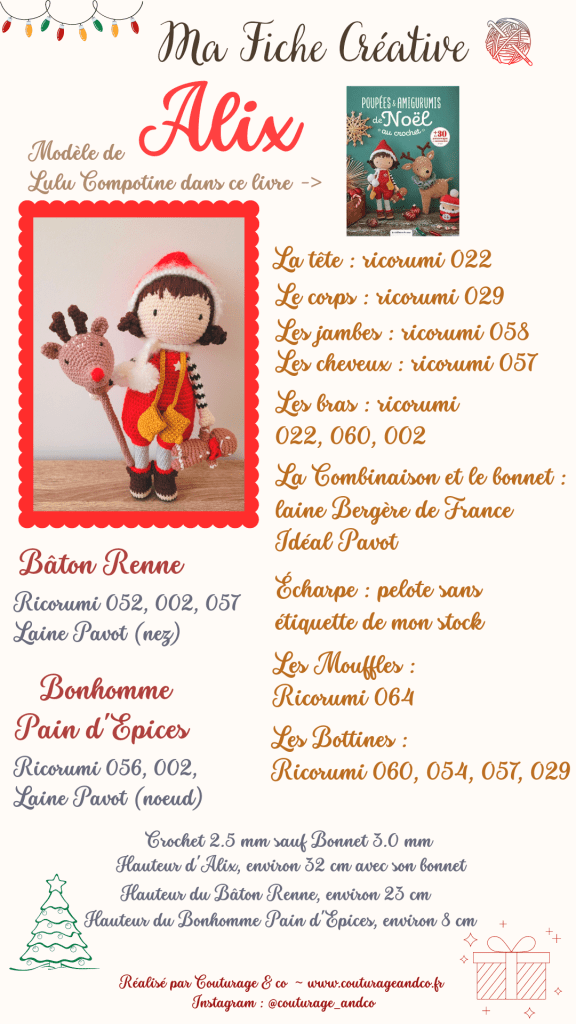 Ma jolie Alix, ses petits compagnons et moi allons vous souhaitez une jolie et douce fin de soirée, nous avons encore fort à faire pour aider le Père Noël à garnir sa Hotte pour gâter mes proches ! Je suis ravie de partager avec vous ma petite fiche créative si vous souhaitez une jolie Alix !