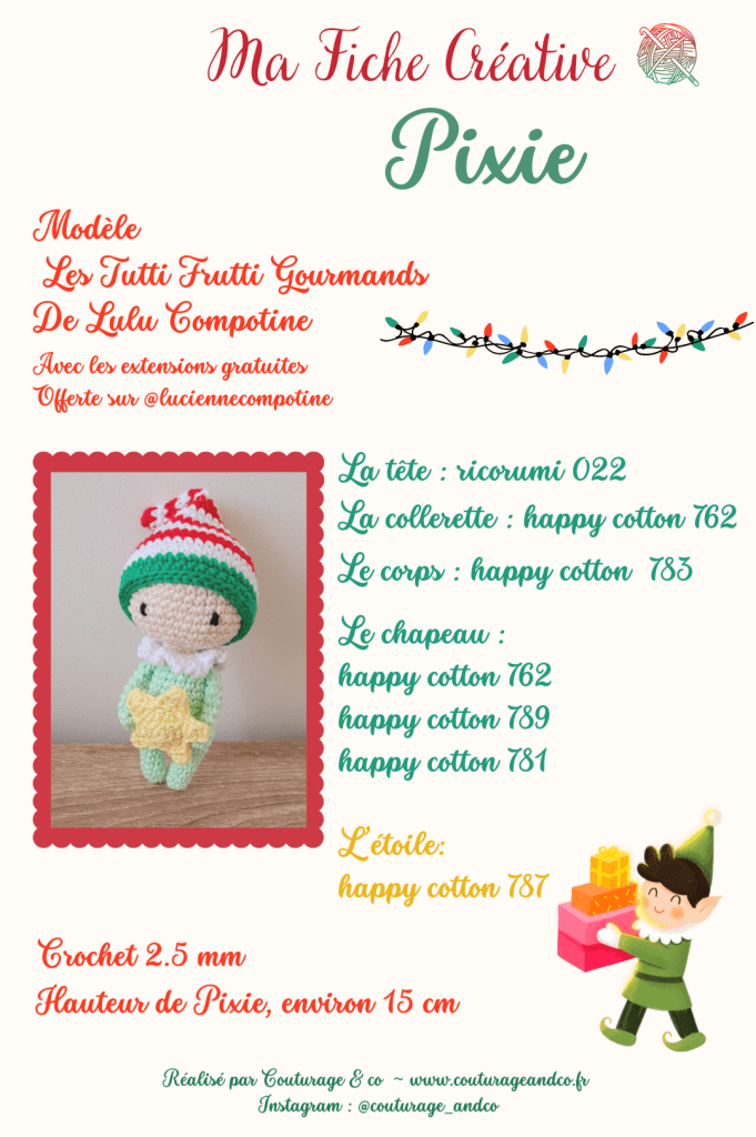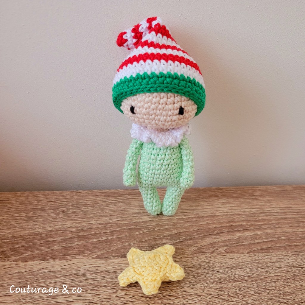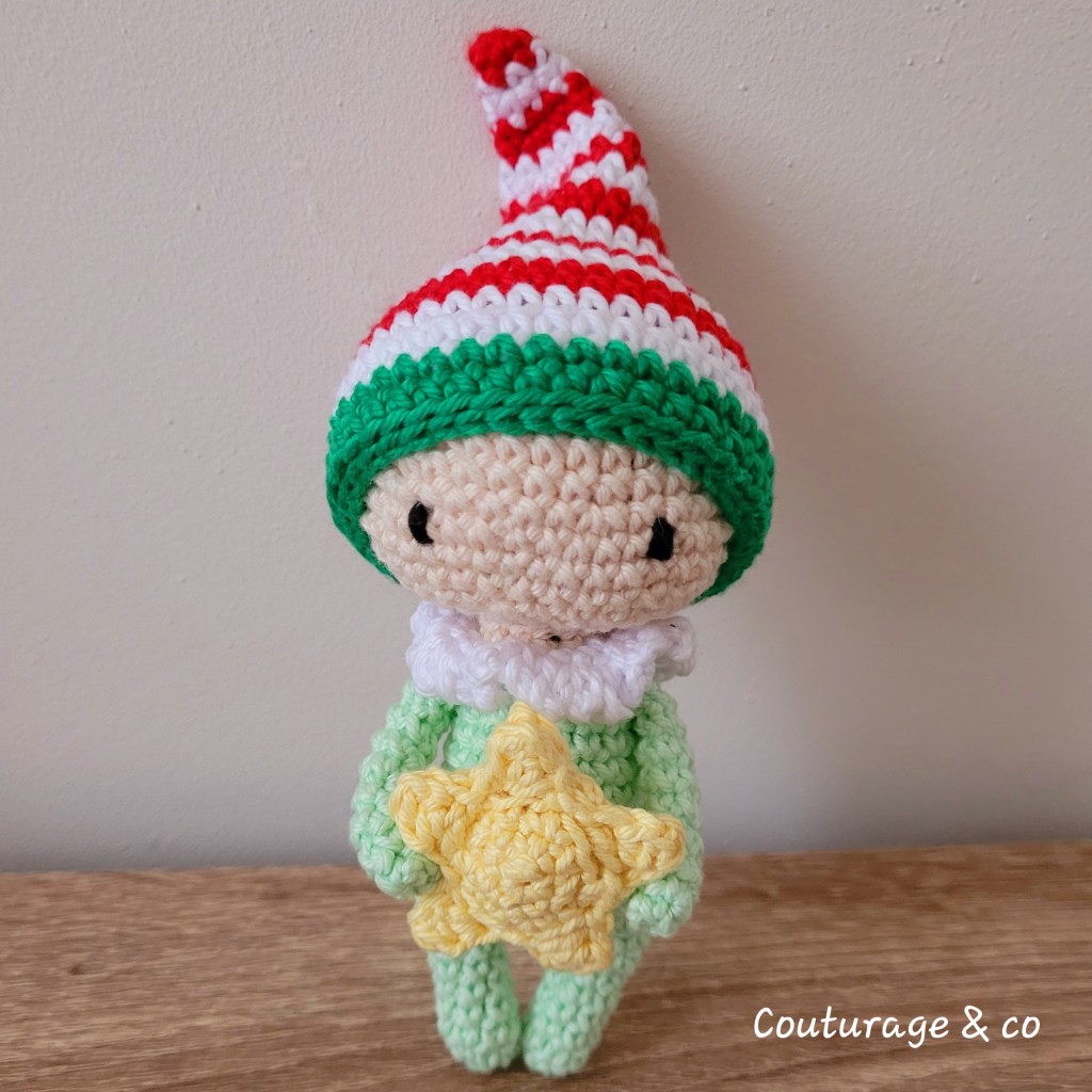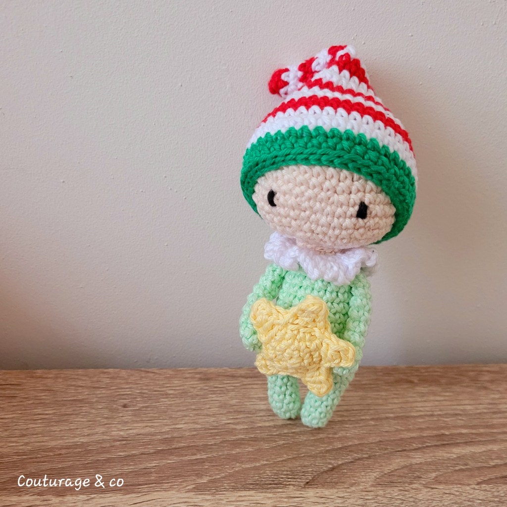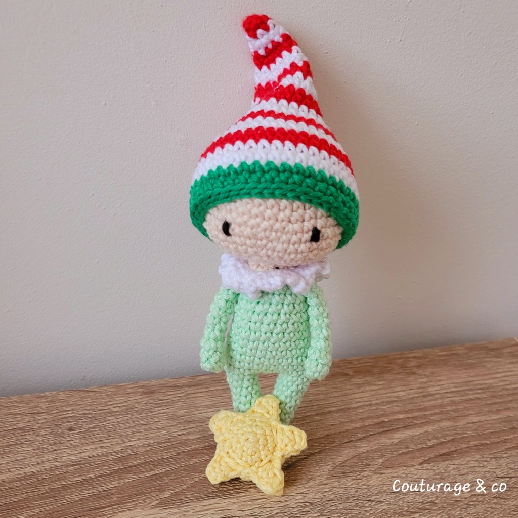 Un petit Lutin Collector, puisque comme pour la petite Sissi, il s’agit de la base d’un petit modèle Tutti Fruti de Lulu Compotine et de parties offertes sur son compte Instagram (le bonnet et l’Etoile).