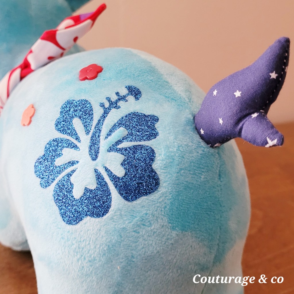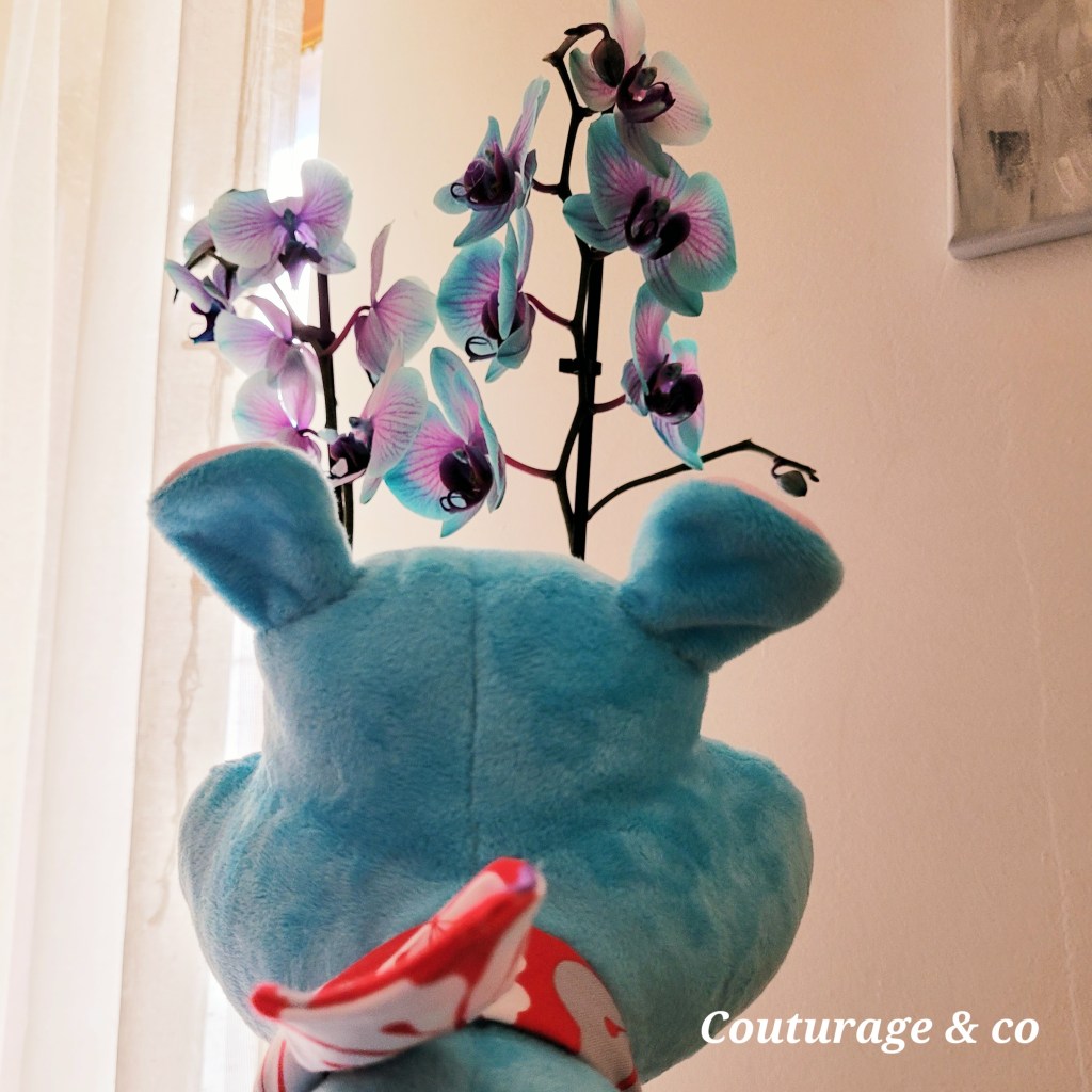 Comme j’aime laisser vagabonder mon imagination, j’ai imaginer que Ohana était née dans les Îles, ses couleurs et sa douceur m’ont portée encore plus loin, alors que je me demandais bien comment la rendre si parlante, elle m’a soufflé à l’oreille, l’idée de l’hibiscus sur son popotin !