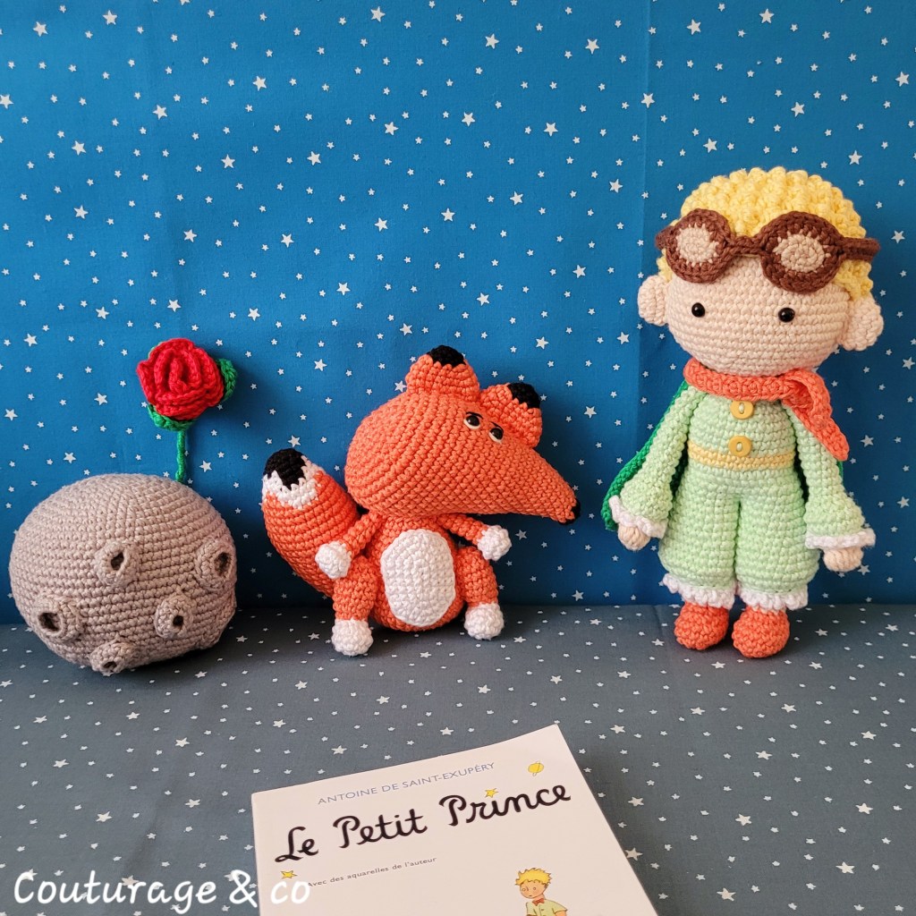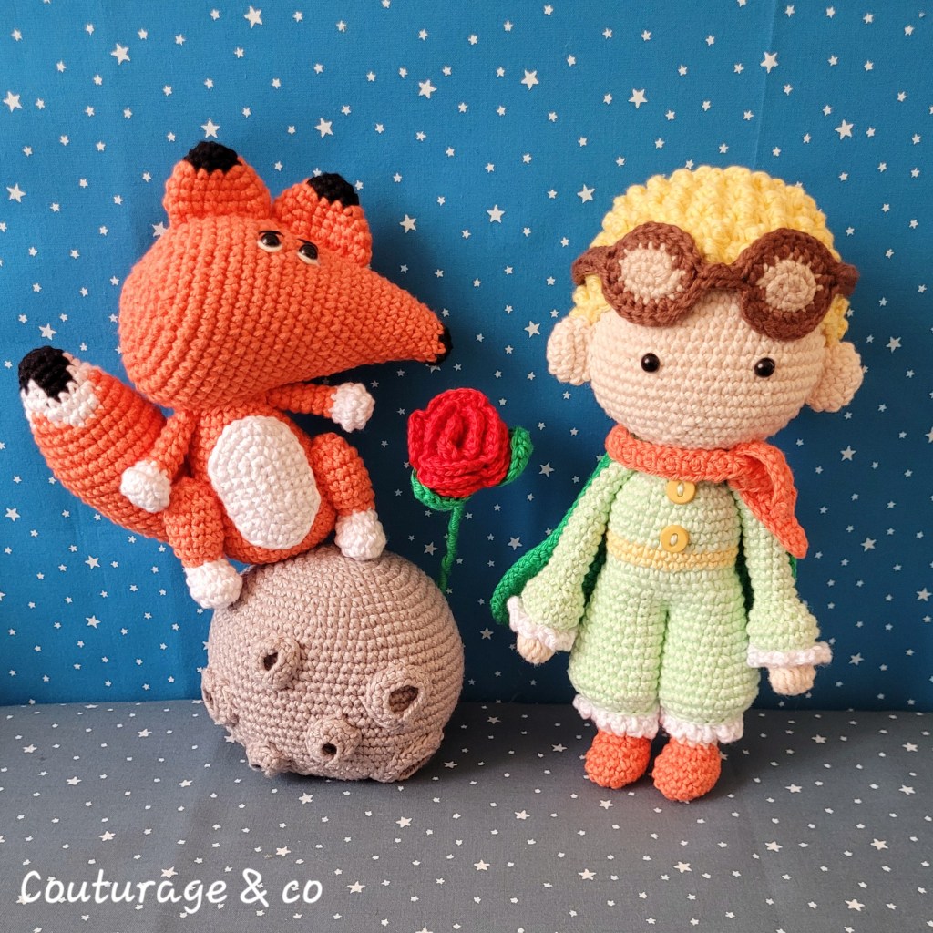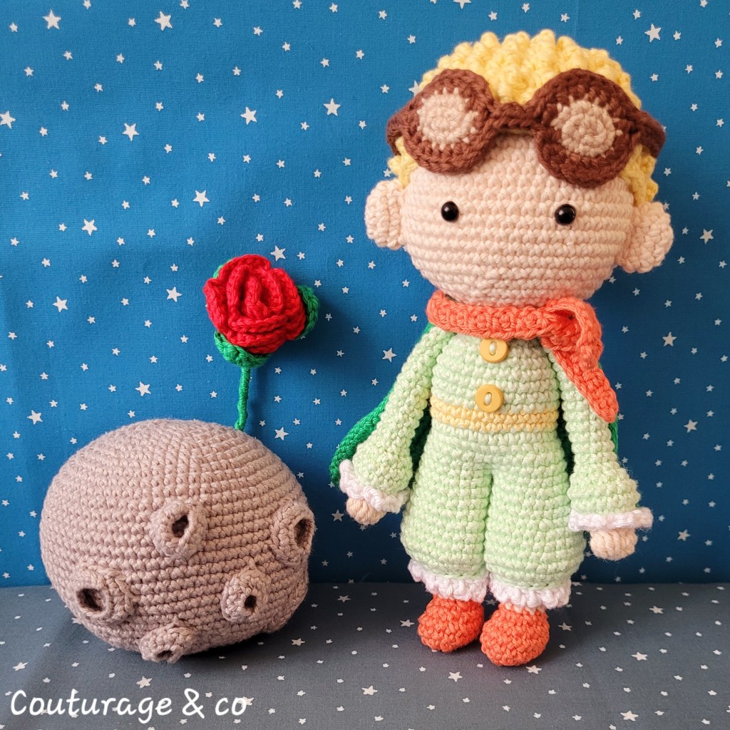 Je pourrais parler du Petit Prince pendant des heures, mais je pense que chacun et chacune interprète ce livre avec ses propres ressentis et sa propre histoire. Côté crochet, j’ai dépassé mes peurs, je me suis lancée, il y a quelques semaines encore, je ne me saurais pas crue d’aller au bout d’un tel projet. J’ai adoré voir naitre cet univers sous mes doigts, juste en m’amusant avec le fil. C’est une réussite pour moi, non loin d’être parfait, mais très réussi !