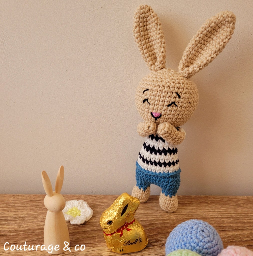 Un modèle collector chez Lulu Compotine, additionné dans la semaine avec le tutoriel des petits œufs de pâques. Les détails de ce Lapin tout doux sont à retrouver ici, j’ai également ajouter quelques petits œufs. Le tutoriel des petits oeufs est également disponible et offert sur le compte instagram de Lulu Compotine.
