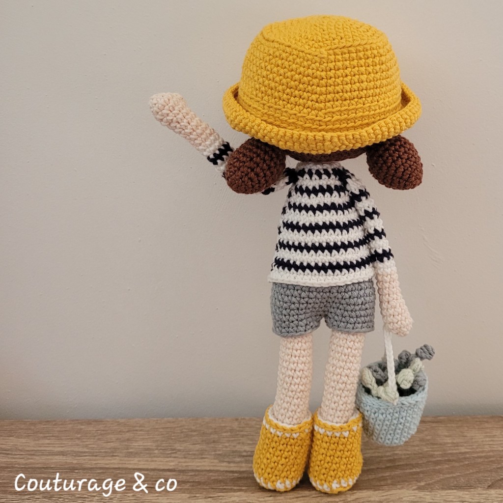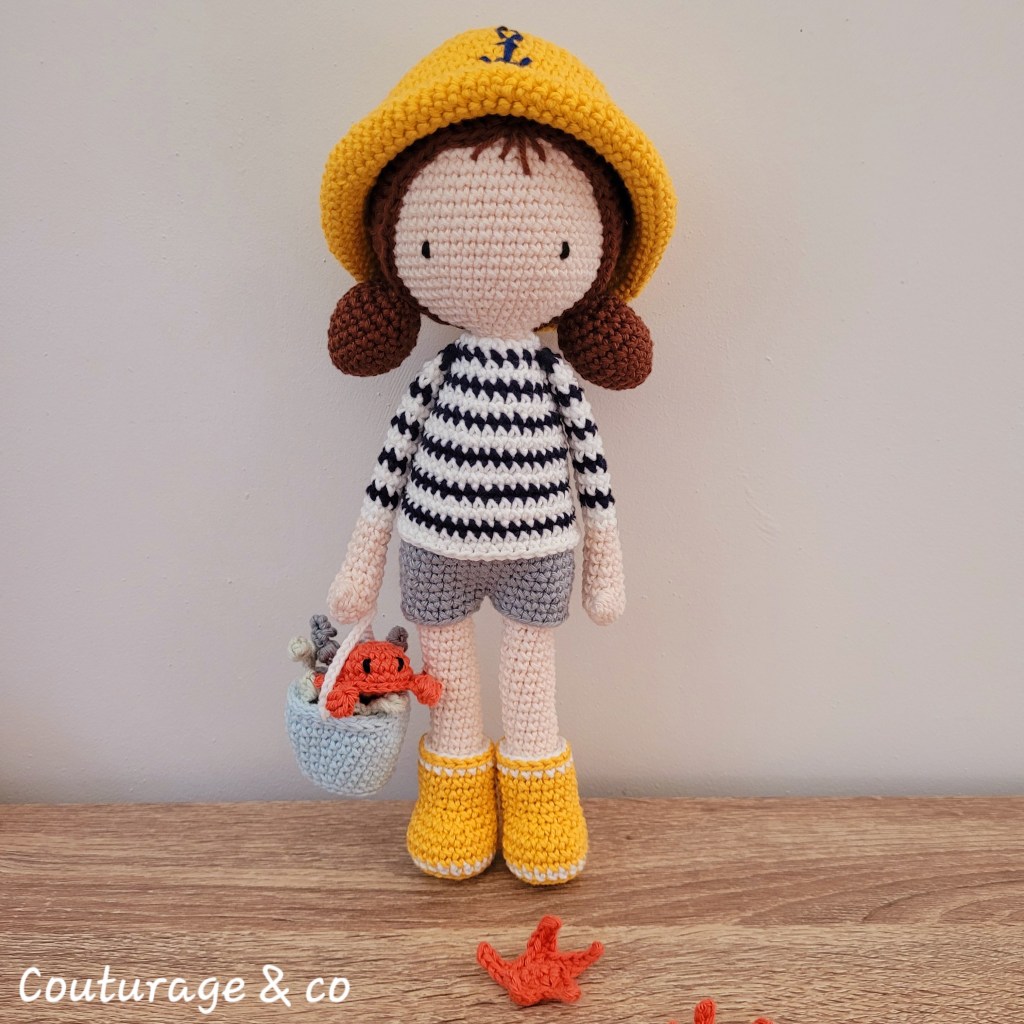 J’ai adoré la voir se dessiner peu à peu, et prendre vie, sa Jolie Milla ! et ces petits détails qui font tout le charme des ces jolies photos, Monsieur le petit crabe malicieux ne fait que des bêtises et joue avec les bottes de Milla ou à cache cache avec son chapeau !