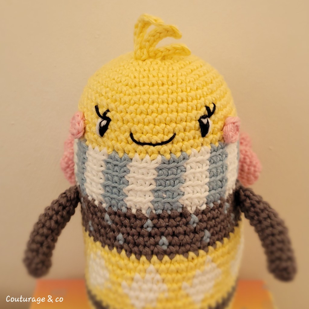 J’ai également fait le choix de broder les yeux, n’ayant pas le matériel conseillé, je me suis aidée du tutoriel de @galounettecrochete trouvé sur Instagram. Une première pour moi, je suis assez satisfaite, cela lui donne une petite bouille toute mignonne.