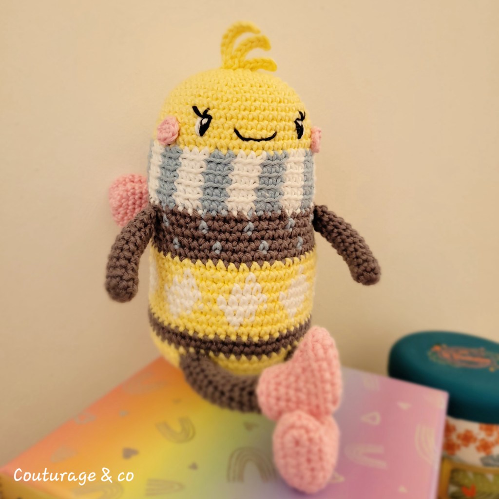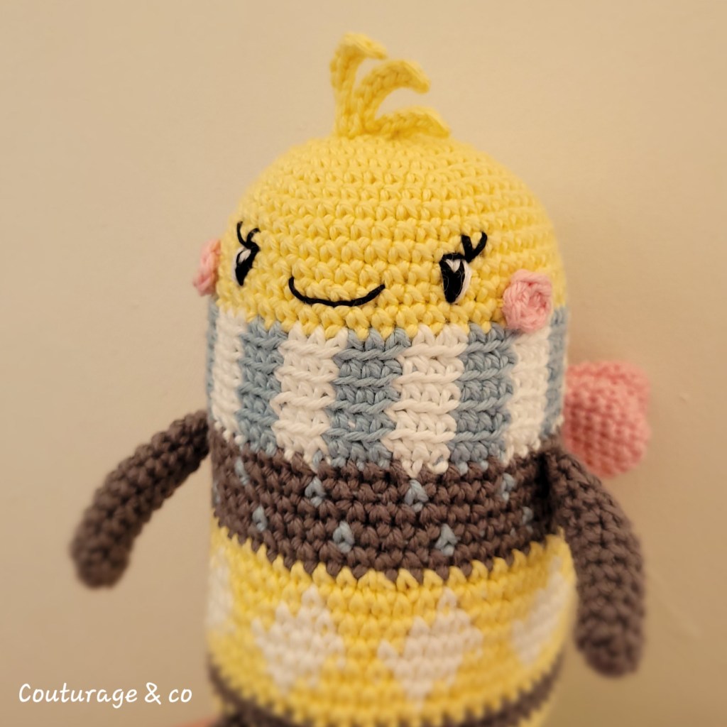 Mon choix pour le tout premier, s’est porté, sur Agathe l’Abeille ! J’ai craqué, c’est, je pense, mon modèle préféré du livre ! Même si d’autres me font aussi de l’œil !