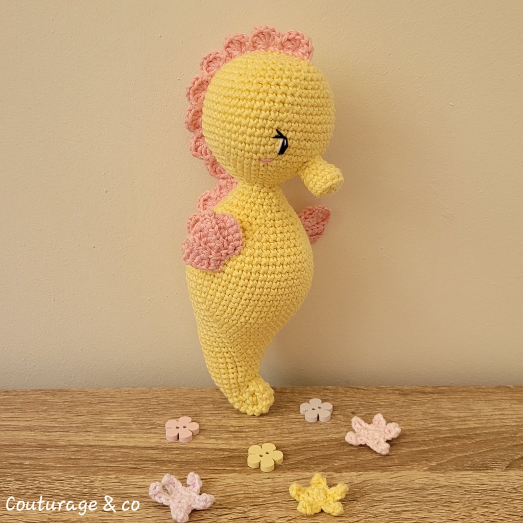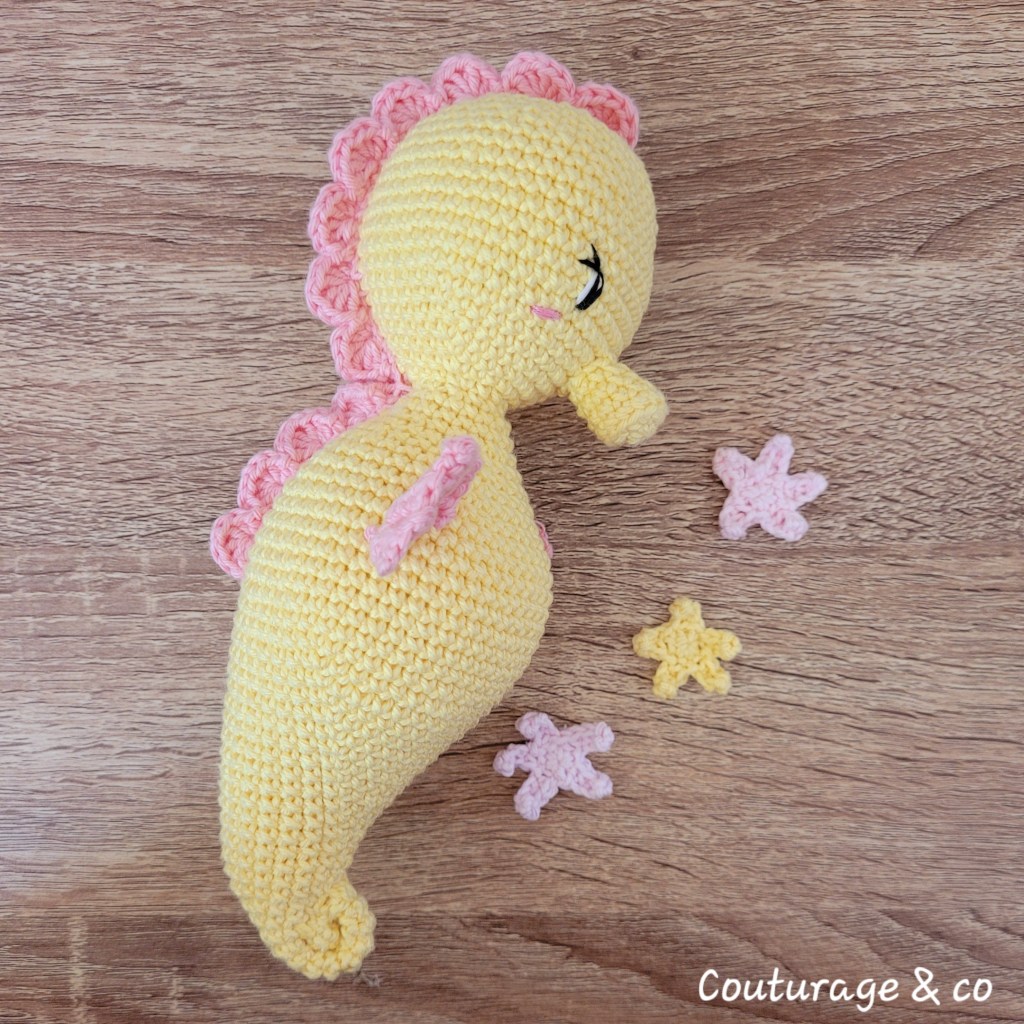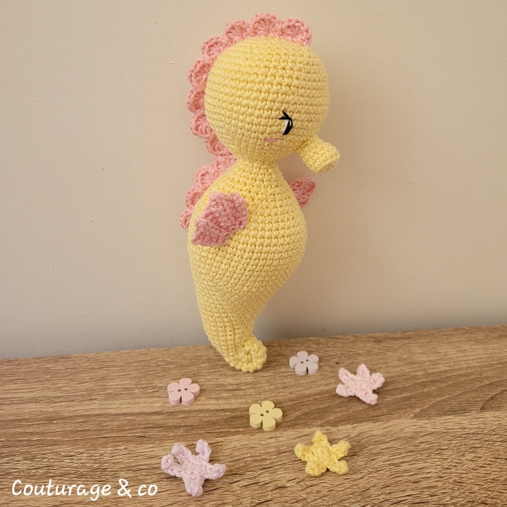 Un petit hippocampe rejoint l’atelier, il se nomme Tagada, il a le nom d’un petit bonbon, et c’est un patron bonbon !