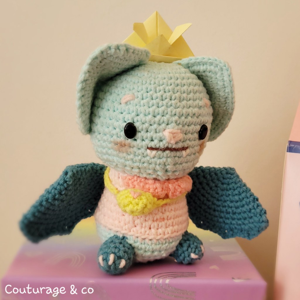 Cette petite chauve souris est sa 3ème réalisation, et elle gère ! je sais qu’elle n’est pas super satisfaite de son travail, mais elle peut être contente d’elle, car cette petite chauve souris est parfaite ! Elle lui a même fait un petit chapeau en origami !
