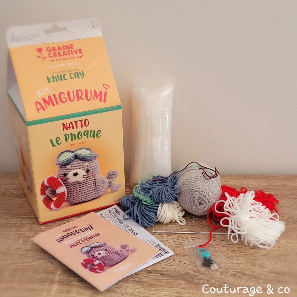 Il y a quelques mois, j’ai acheté ce Kit de chez Graine Créative. Je suis tombée amoureuse de ce modèle de phoque proposé par Khuc Cay.