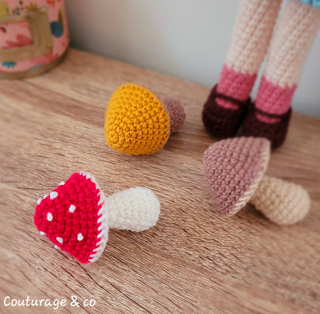 Retrouver Glad par ici et Sissi par ici, les billets de blog vous expliquerons tout comment il faut faire pour obtenir les mêmes ! Pour les champignons, le modèle est issu du livre !