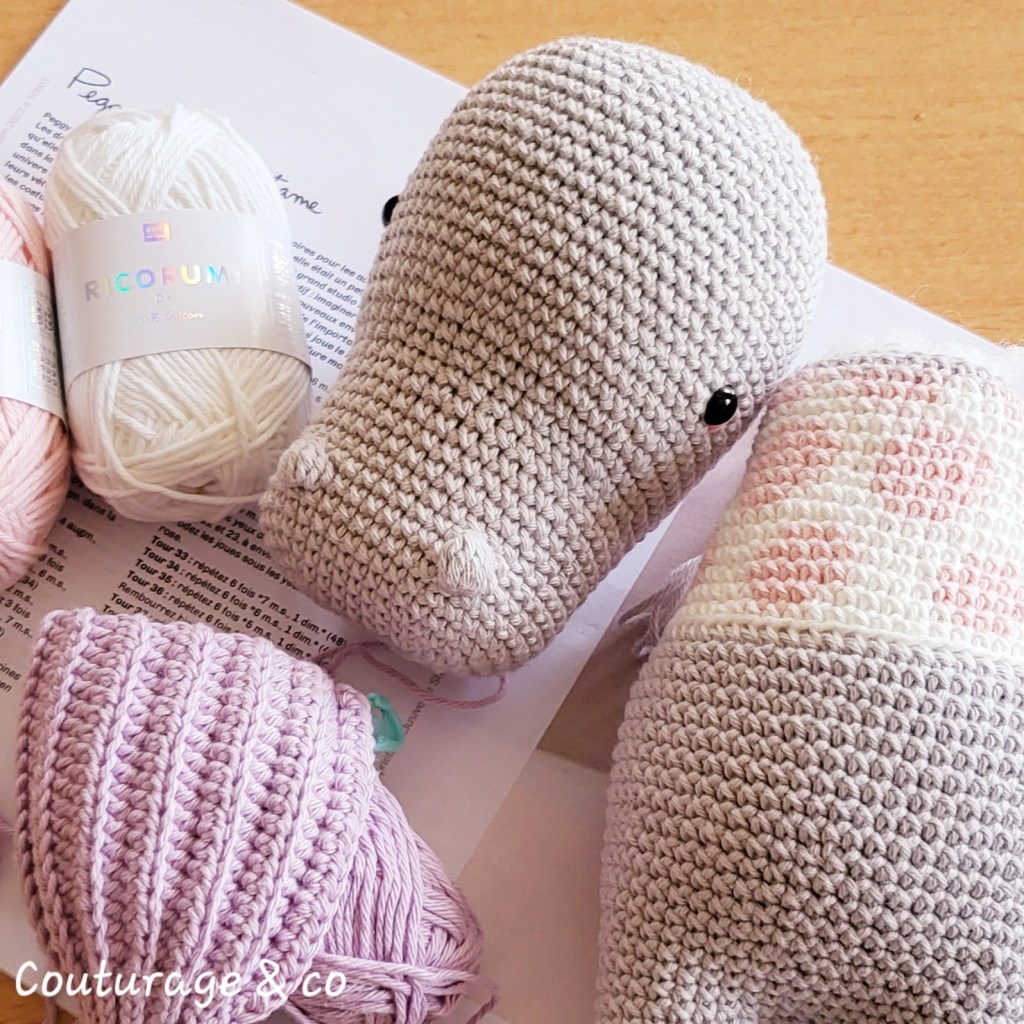 Une création hyper agréable à faire, je me suis bien amusée, je trouve cet hippo si doux et si élégant. J’ai choisi une variation de couleurs pastels dans le nuancier ricorumi, et mon fidèle crochet 2,25 mm. Pas de difficultés particulières, un petit modèle qui mesure presque 30 cm tout de même.