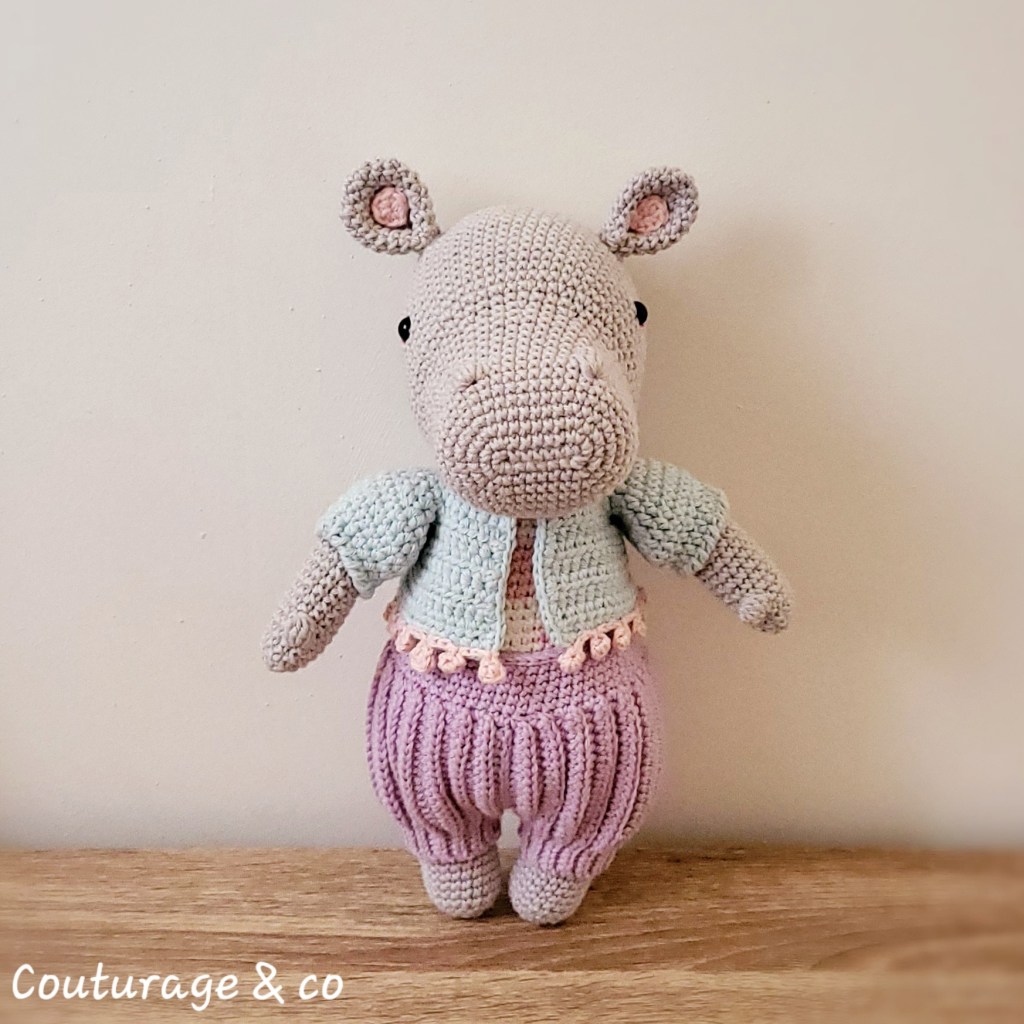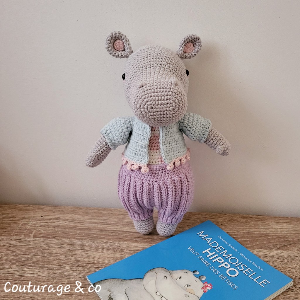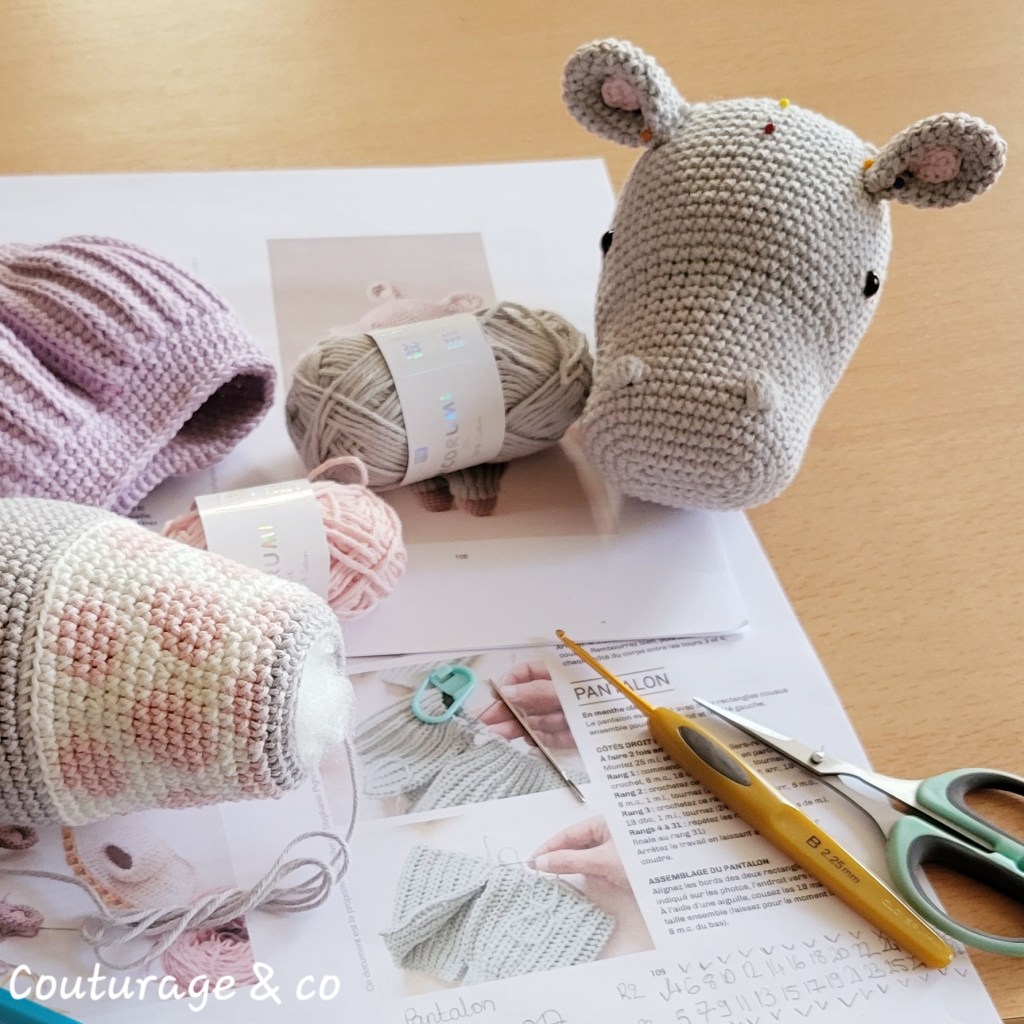Un modèle sans surprise pour celles qui me suivent depuis de longues années ! Un hippopotame bien sur ! il y avait longtemps que je n’en avais pas fait un ! J’ai profiter de cette occasion pour en combiner 2, en effet ce petit modèle n’est déjà plus en ma possession, puisque parti veiller sur une petite princesse toute fraîchement débarquée fin janvier. Le combo parfait pour ce mois de février.