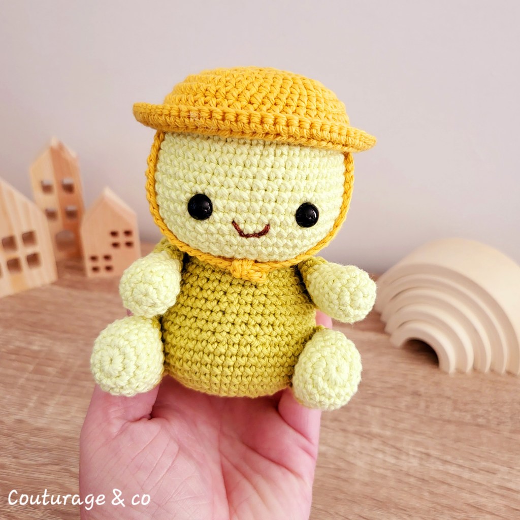 Elle est toute rigolote avec son petit chapeau ! Mes enfants ne l’ont pas encore vue, elle est donc encore mienne pour le moment. J’aime beaucoup les petits modèles de Khuc Cay, je prend toujours beaucoup de plaisir à les faire naitre, j’aime leur formes arrondies bien particulière à cette créatrice.